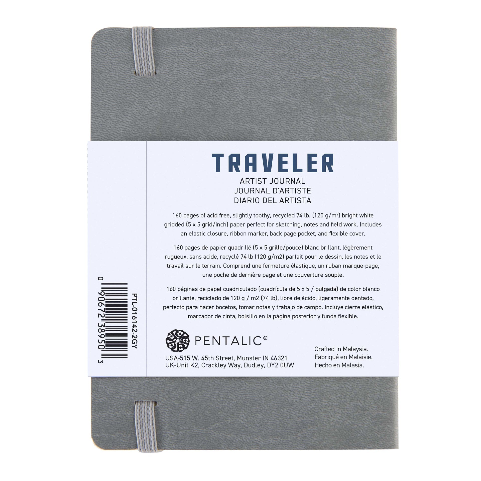 WAL-PTL-016142-2GY | Pentalic - 4"x 6" Gray Traveler Pocket Artist Journal, Drawing Sketchbook, 160 Pages, 74 lb. Grid Paper